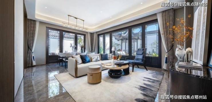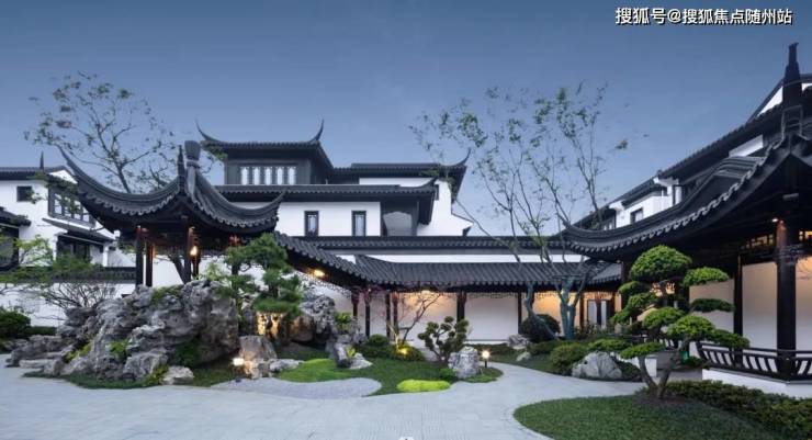 在园林形制上,引入曲石折桥、掇山理水、镜湖邀月、湖石蹬道等节点,亭台、石桥、连廊、水系巧妙而设,动静之间,变幻无穷……借以山水写意,于咫尺之内造乾坤,一个“微缩版”的苏州园林亦可“私藏”。