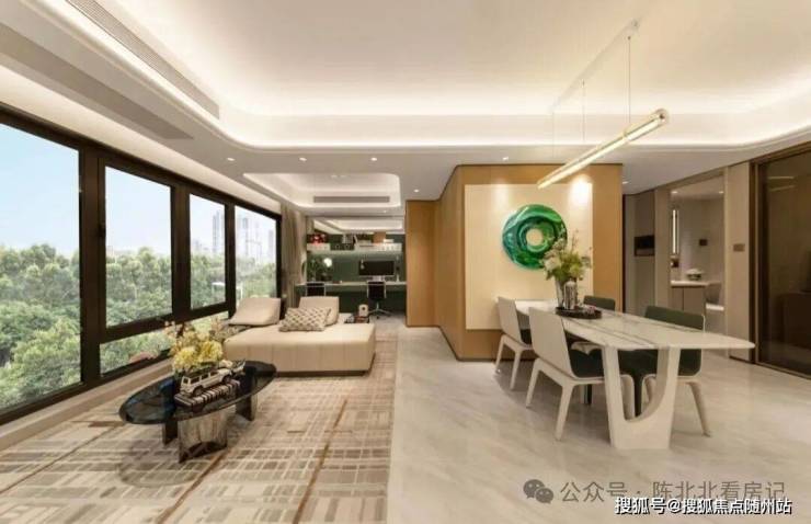 餐客厅开间6米,面积达到约60方,媲美200方大平层居住体验,主卧采用270度飘窗设计,可更好的提升主卧采光及景观。
