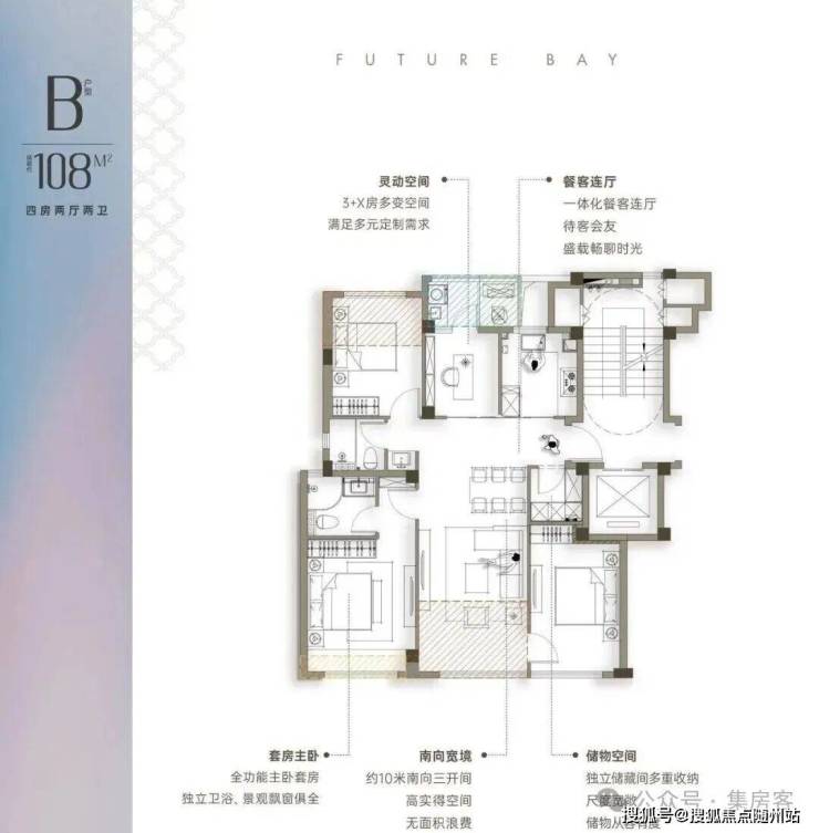 108㎡实现四房布局带独立储藏间,最高96%的得房率。实际居住体验兼顾了性价比、功能性和舒适性,满足了从两口之家到 “小太阳家庭” 的置业需求,就算是父母同住空间从容有余。