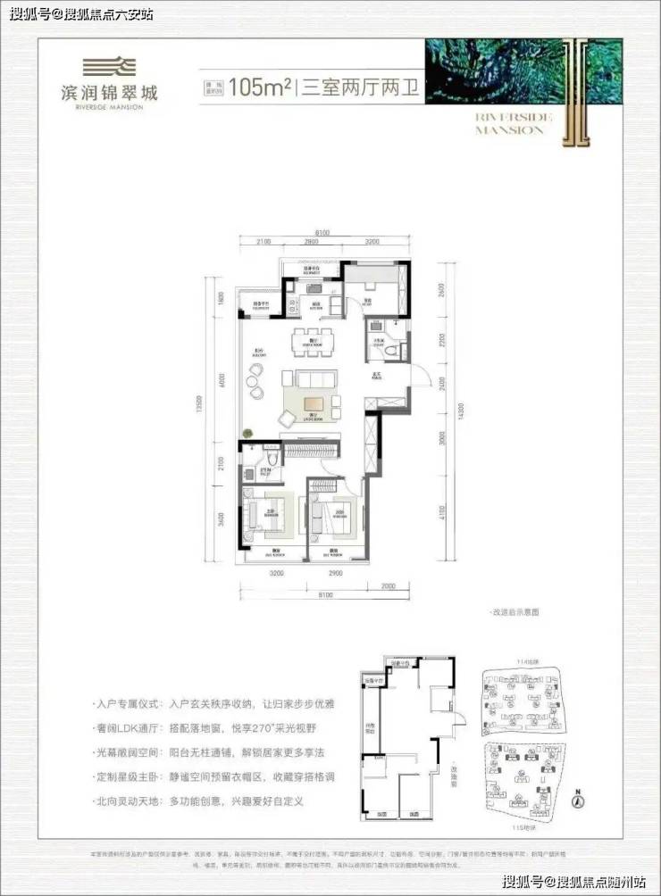 带独立玄关收纳,套房主卧带超大衣帽间,南向约6.1米双飘窗,U型厨房带大开窗,餐客厅一体带约6米超长阳台……该户型更具有生命力。