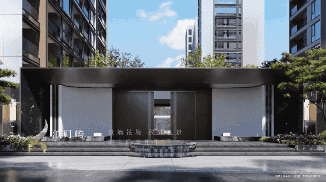 门前是同价位楼盘很少见的日本黑松,树龄有几十年。穿过主入口,迎接你的是美术馆般的巨幅玻璃框景。