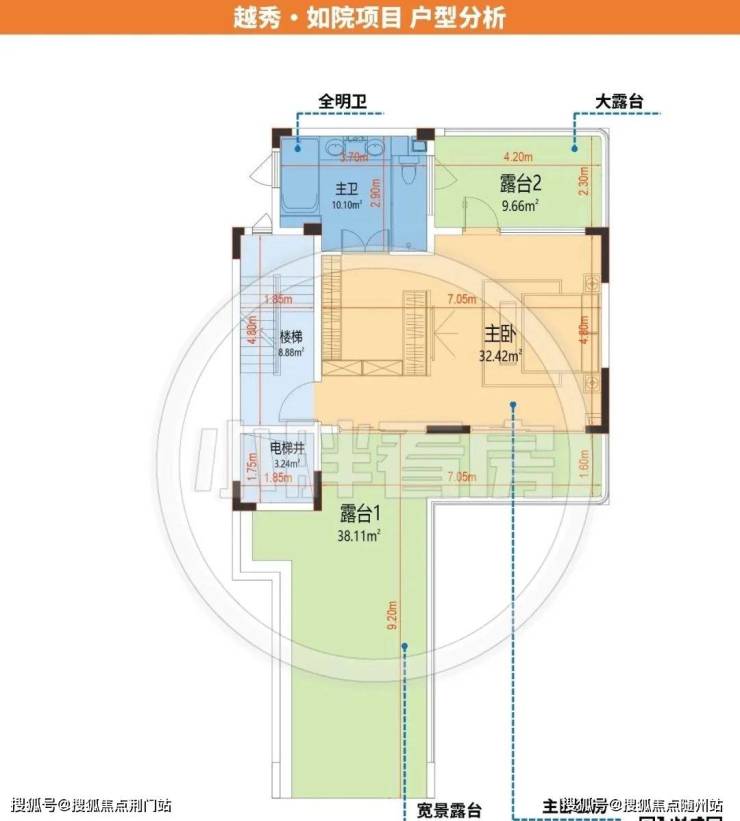 套内面积:370.9㎡,赠送面积:101.8㎡,得房率:131%。