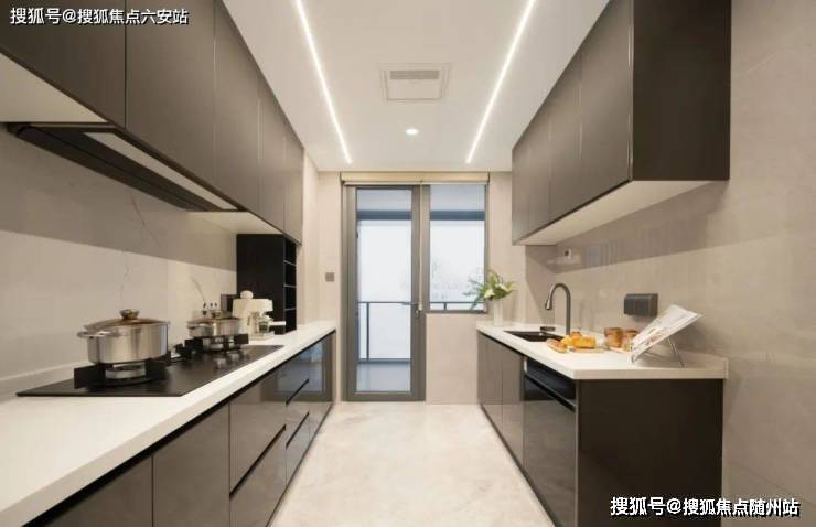 16项厨卫系统中,标配方太全隐升降款油烟机、三眼灶、15件套洗碗机。顶上有奥普凉霸,灶台有岩板背景墙,不只实用,还细致关照厨房的“清洁动线”。