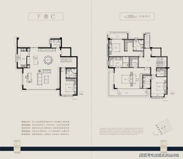 叠墅面积:210~280方