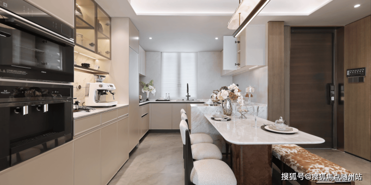 小区采用半抬高地库的创新设计,邀请了知名的建筑设计院量身定制,立面风格采用经典公建化立面,四面铝板搭配大面积玻璃,封包阳台,整体精致通透,底层以浅色天然石材为主,额外做了圆弧细节,轻盈洒脱,尽显优雅格调。