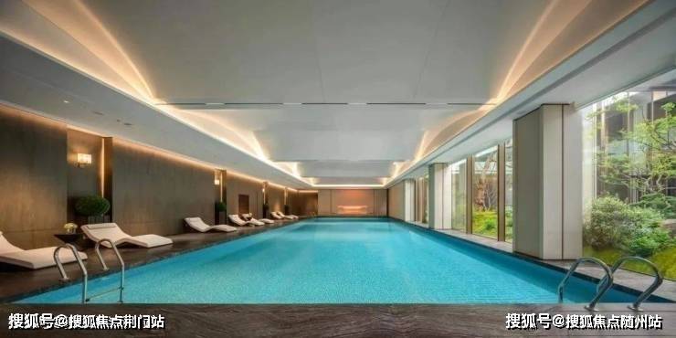 有恒温泳池,是以度假酒店为灵感设计的,通透的落地玻璃窗下与下沉庭院景观相互渗透,实现一年四季畅游的“游泳自由”。