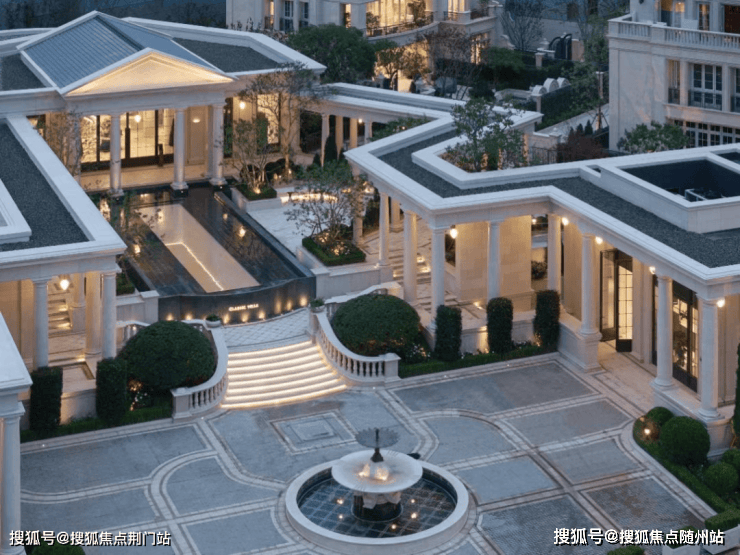比如,你能看到入口那片很美的镜面水池,被法式廊柱包围出强大气场;你也能看到地下约8.2米层高的室内恒温泳池,它的上方正闪烁着从镜面水池透射下来的日光;