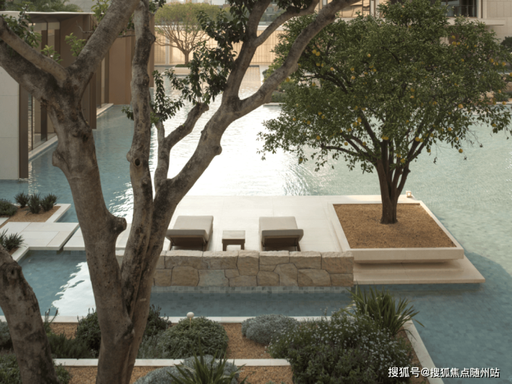 步入二进橄影廊庭,光影在回廊与水面间流转,构成静谧而富有呼吸感的水庭。天光倾泻,水色生辉,如同希腊安缦花园般悠然浪漫,演绎栖居的诗意序章。