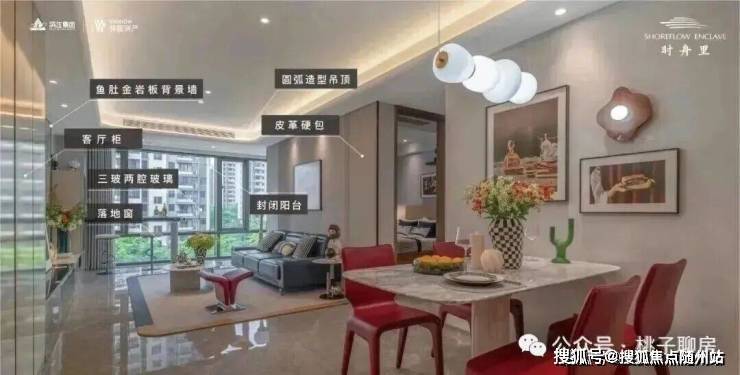 所有户型均采用全封闭阳台设计,得房率高达86-87%,精装修交付包含玄关柜、餐边柜等全屋收纳系统。