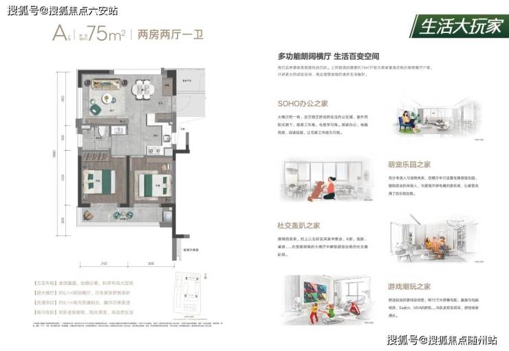 针对青年群体的居住痛点,上河新境府创新推出建面约65-75㎡70年大产权住宅,以“低总价+高品质”打破刚需市场的刻板印象。两种户型均做到全明通透、动静分离,用细节诠释“小而美”的生活哲学: