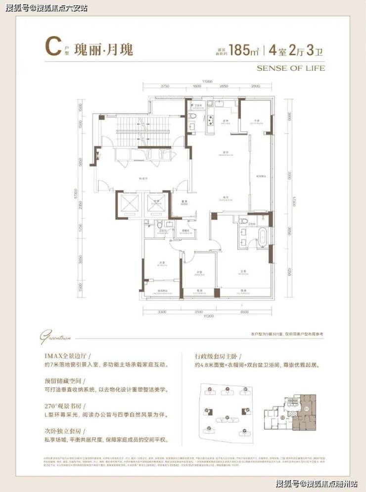 149㎡和185㎡,本次加推的为尚未开放样板间的170㎡户型: