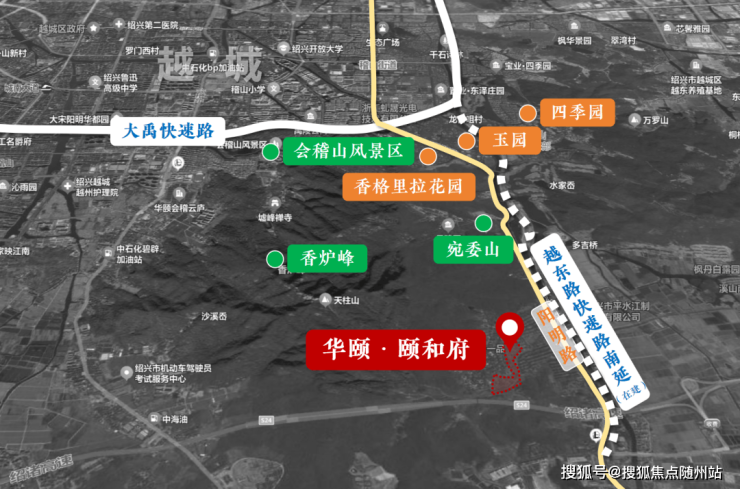 华颐颐和府的“低密”,从未牺牲生活的便利性——它以“会稽山生态+城南配套”的双轮驱动,构建起“隐于山,便于城”的生活圈。