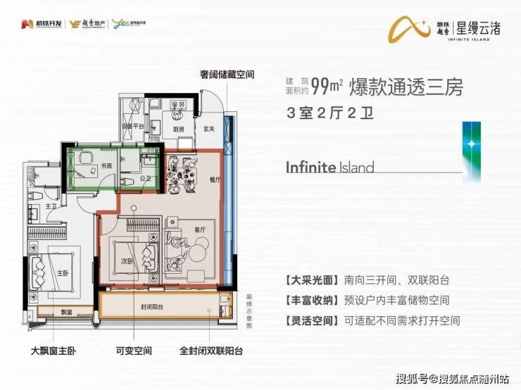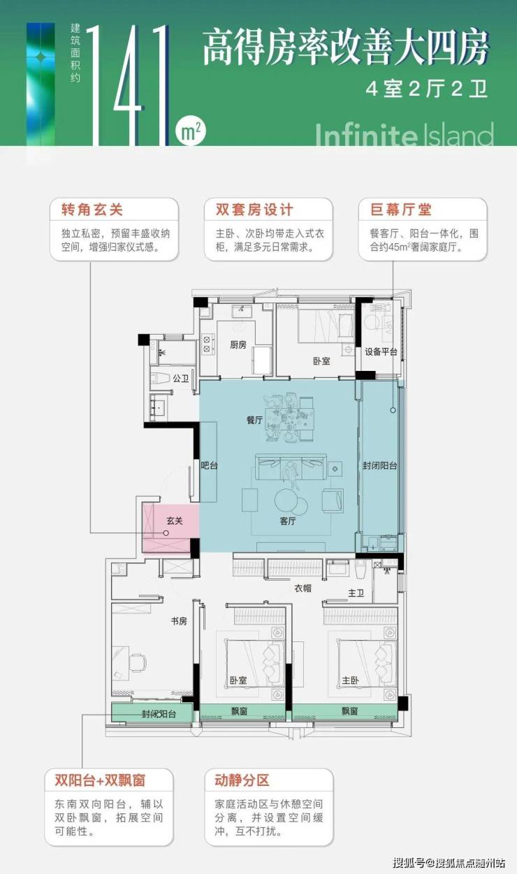 •更优公区:主题架空层、两梯四户,最高可达约90%高使用率;