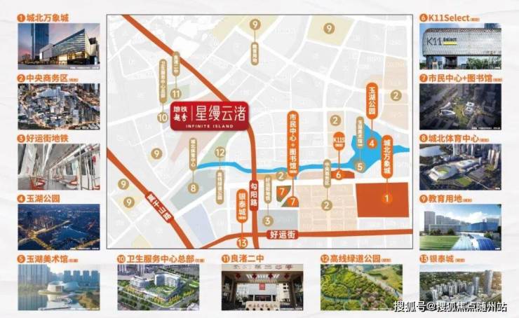 超级商圈环伺:杭州唯一拥有双鼎流商业万象城、K11 Select(规划),另有银泰城(规划)、万达广场、西田城、麦德龙、金地广场、永旺梦乐城、玉湖公园、高线公园(宣杭铁路改造规划)、郁宅港水系景观(规划)、卫生服务中心总部(在建)
