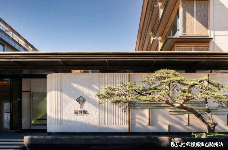 在建筑上,如玺华院以天青色陶板,致敬杭州的宋韵文化,演绎“雨过天青云破处”的意境;观锦宸樾府用伊朗红洞石,唤起当地人对临安鸡血石文化的情感共鸣,呼应“鸡血一滴避邪气,得此宝贝最吉祥”的民间佳话;运河樾用蓝色景泰蓝搭配弧形陶板,再现运河的波光,诠释“春来江水绿如蓝”的江南意境。