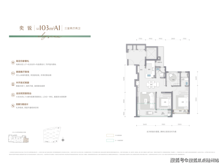 最小面积仅约103方,电梯厅分置两侧减少连廊的影响和中间套电梯对门的尴尬。室内S墙设计和侧卧过道空间放大,能极大提高利用率,减少浪费面积。
