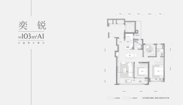 建面约103㎡样板房实景图,非交付标准,以实际交付为准