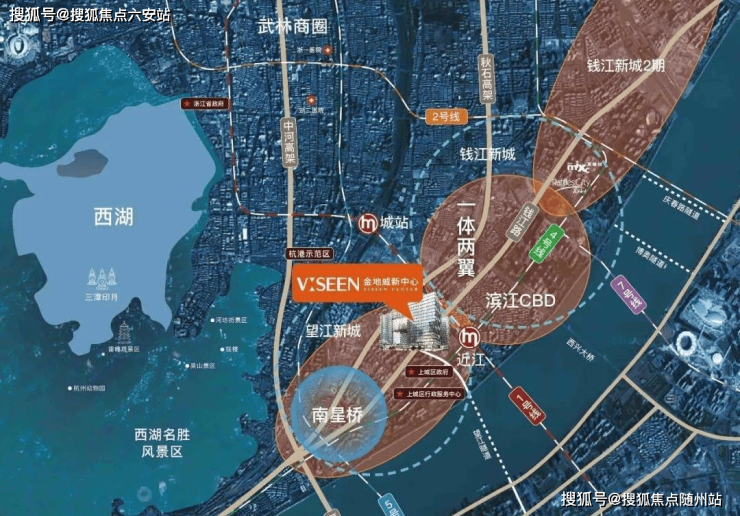 市政配套方面,1/4号线近江站地铁口,近邻秋石高架、中河高架、机场快速路等,与杭州城站直线距离约2km,到杭州东站,直抵萧山机场,全维立体城系交通网络,引领高效商务。