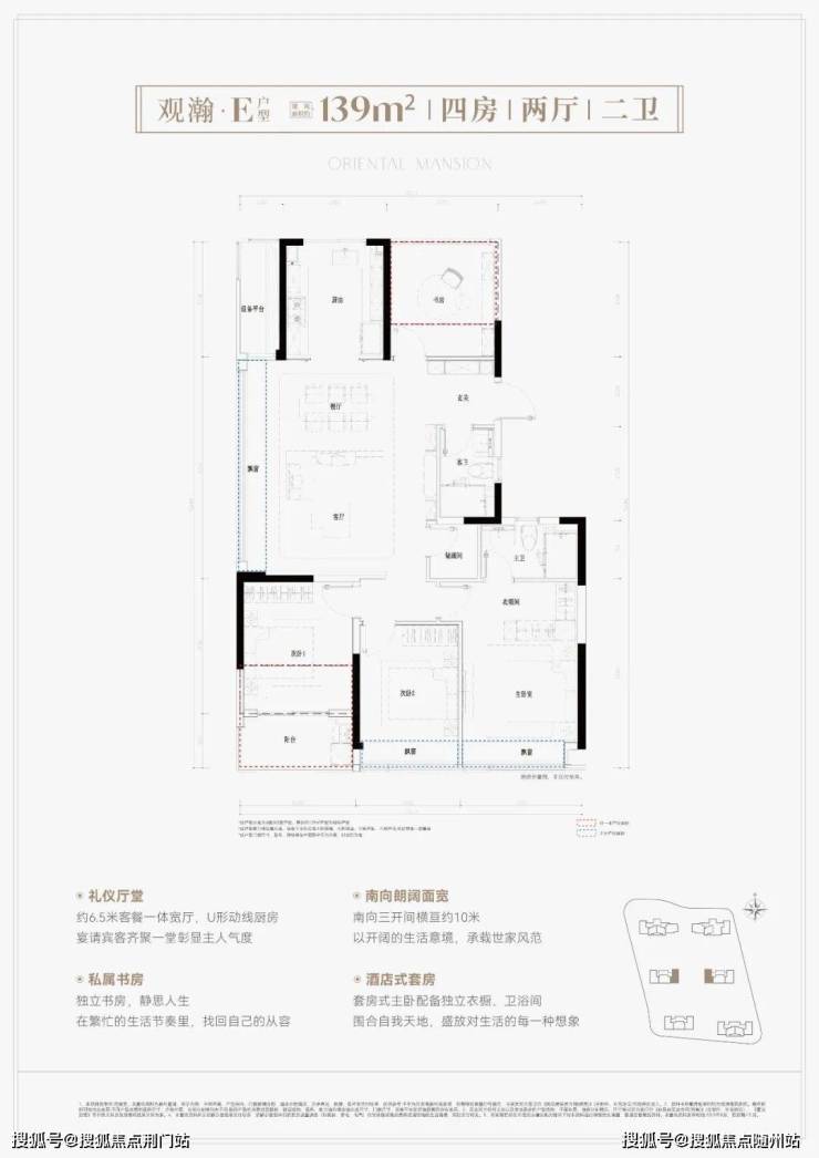 鸣澜里139平户型同样做的不错,打造四房两厅两卫,分为横竖两款,全部为边套,两梯两户设计。其中,139平竖厅户型亮点分析:①户型得房率超高,达到约93%;② 南向3个卧室,采光优且满足二胎家庭和三代同堂居住需求;③ 客厅面积达到约37平,足够大,同时额外配置约2.6平的储物间。