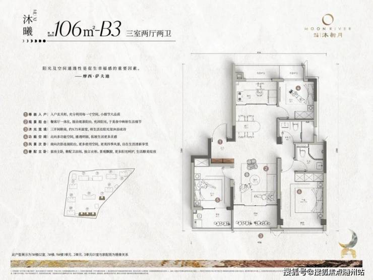 滨江兴耀沐新月作为M55系第三个作品,以林汐美学为源点,承袭大水院美学、夜行者美学、疏密相间的漂浮美学等经典元素,更是因地制宜,打造无界自然的水岸森居,环绕建筑的都会森林、环绕园林的美学潮汐、环绕水景的漂浮岛屿的三重景观美学,理想生活如新月变幻,迭新不息。户型面积96㎡-135㎡,主城300万级臻稀小户型,户型设计及精装全维升级,打造区域内产品力标杆。