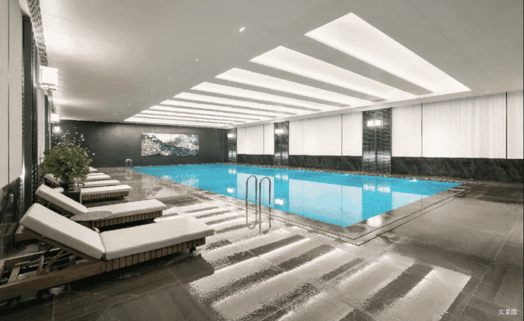 宁波华润置地首个 恒温泳池,潜心浮岛模式。