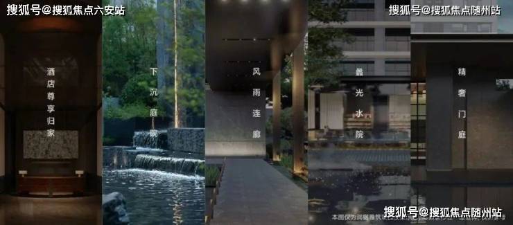 串联酒店尊享归家-下沉庭院-风雨连廊-蠡光水院-精奢门庭,五大归家场景,建构归家-停泊-过廊-观园-入户的礼仪动线,迭代进阶生活的仪式感。