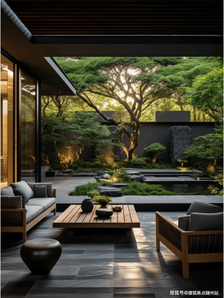传统元素:迎宾水景、曲水流觞、私密花径复刻古典园林韵味;