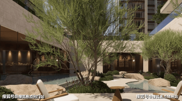 板块内首个局部抬高的楼盘项目也是板块内首个新规抬板社区。通过借助约9米高差,营造出下沉式景观庭院,让空间显得层次更加丰富与立体。