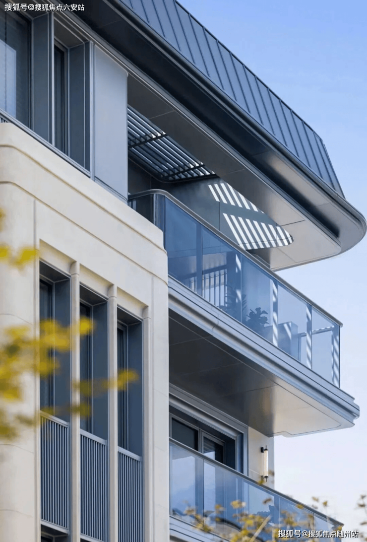 建筑立面采用经典欧式“三段式构造”,选用米色天然莱姆石与暖色仿石铝板搭配 。特别值得一提的是其“类孟莎式”屋顶设计,通过独特的镂空处理提升户间隐私性。