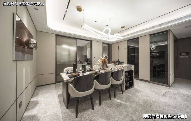 CCD设计加持:香港郑中设计事务所操刀,玄关采用太古黑金大理石,客餐厅通铺山河万象奢石背景墙,私享星空顶入户大堂。
