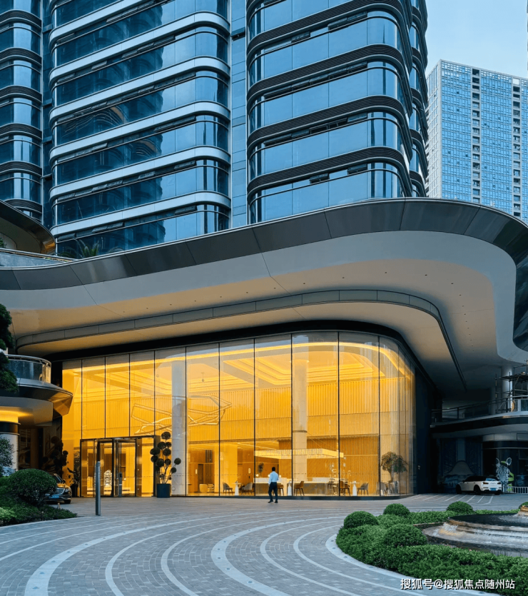 “梦露裙摆式”流线玻璃幕墙:采用全球最大单幅水晶玻璃幕墙(单块宽2.4米),悬挑雨棚可停18辆劳斯莱斯,兼具力学与美学突破。