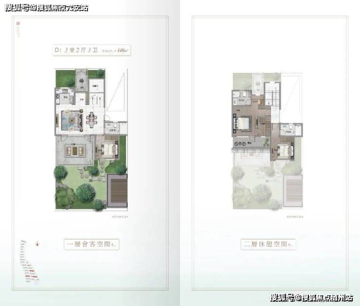 一层作为家庭公共活动区,布局宽敞的客厅和餐厅;二层则主要规划为卧室私密区,主卧采用超大套房设计,面宽最大可达约7.7米,搭配阔绰尺度的观景阳台,提供酒店式的居住体验。这种科学的空间规划既保障了家庭成员的私密性,又促进了家人间的交流互动。