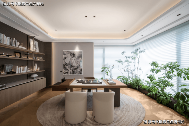 建面约 325㎡西边套,将「家庭图书馆」融入大平层中 。试想一下,周末清晨,阳光透过玻璃窗洒落书桌,父亲在沙发翻阅财经杂志,孩子在书桌专注写作业,母亲则在厨房烘焙早餐,空气中弥漫着墨香与咖啡香——这样的场景让人忍不住对未来生活充满畅想。