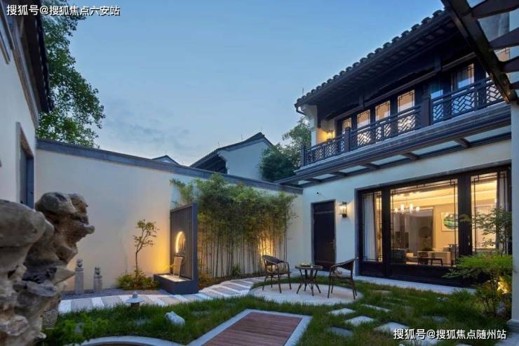 白墙黛瓦,淡雅高洁,苍松翠柏,静守庭院,一如文人风骨,假山造景,石块叠加。倚墙而筑,营造浓郁的中式格调
