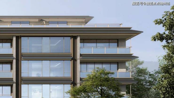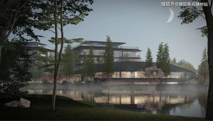 香槟色、深色铝板,搭配石材和大面积玻璃,绘就湖泊与溪涧之上的一朵彤云。