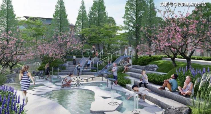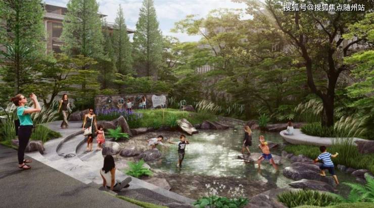景观不再仅仅关注私密,而是在溪流、缓坡、林木之间,呈现10处亲水场景,将童玩、会客、休憩、健身等功能与社交空间,包容在内。