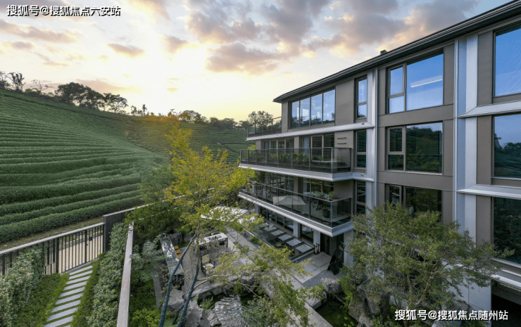 项目整体地基最高,且内部台地与外部道路有3-5米高差,形成自然退让,独享三面环山的开阔视野。每家每户都向着阳光敞开,最大程度获得日照采光,且与外部茶山资源形成呼应,带来一线茶山的观景视野。