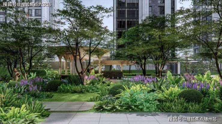 园林以保罗·塞尚的自然主义美学为灵感,打造“诗梦田园”“沐光草甸”“仙境花园”“雨林秘境”四重主题景观,结合廊桥式归家动线,营造度假式生活场景。园区内树影斑驳、水景错落,实现“出则繁华,入则宁静”的隐逸体验。