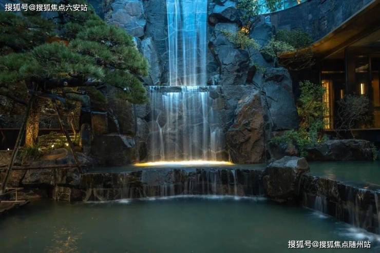 利用高差优势,安云玖院匠心营造一座7米高浓缩山林、溪涧、叠瀑于一体的“立体山峡”中庭景观。整个景观庭院全奢石铺就,没有一块砖!飞瀑旁一棵斜飘式进口黑松“旭日龙鳞”,树龄300年价值200万,更有进口龙梅、羽毛枫、杜鹃球等一同构成 “门庭名树群落”,为业主营造极为尊崇的归家威仪!
