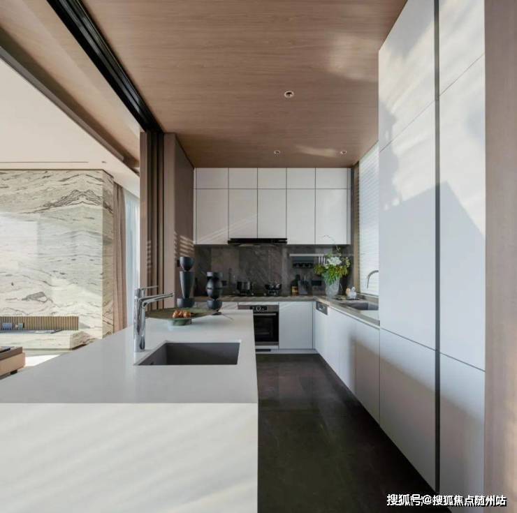 独立前院和礼仪玄关入户,一出电梯门,只见餐客厅和书房一字排开,面宽达约19.8米。一个环绕式超级露台,长度达约30米!设计糅合山居生活与当代设计风格,以静谧优雅的风格诠释国际现代奢华的诗性与意韵。