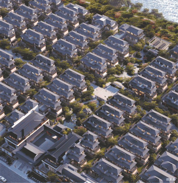 塘颂之所以稀缺,恰恰在于它跳出了这种“卷”。1.1容积率,意味着土地天赋的极致让渡。约140米景观中轴直抵运河观景平台,歇山顶的飞檐、四水归堂的礼序、叠石理水的意境——这些取自宋画《四景山水图》的园林语言,只有在足够的土地上才能舒展。