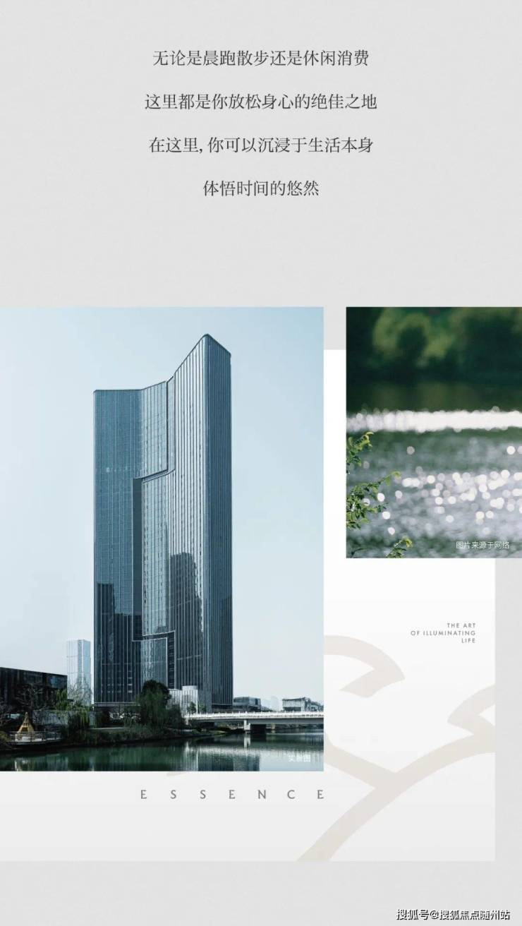 建筑美学:以"高山流水"为设计灵感,全玻璃幕墙勾勒出塔尖艺术奢域的永恒地标,4.2米层高搭配270°环幕落地窗,最大面宽达65米612。