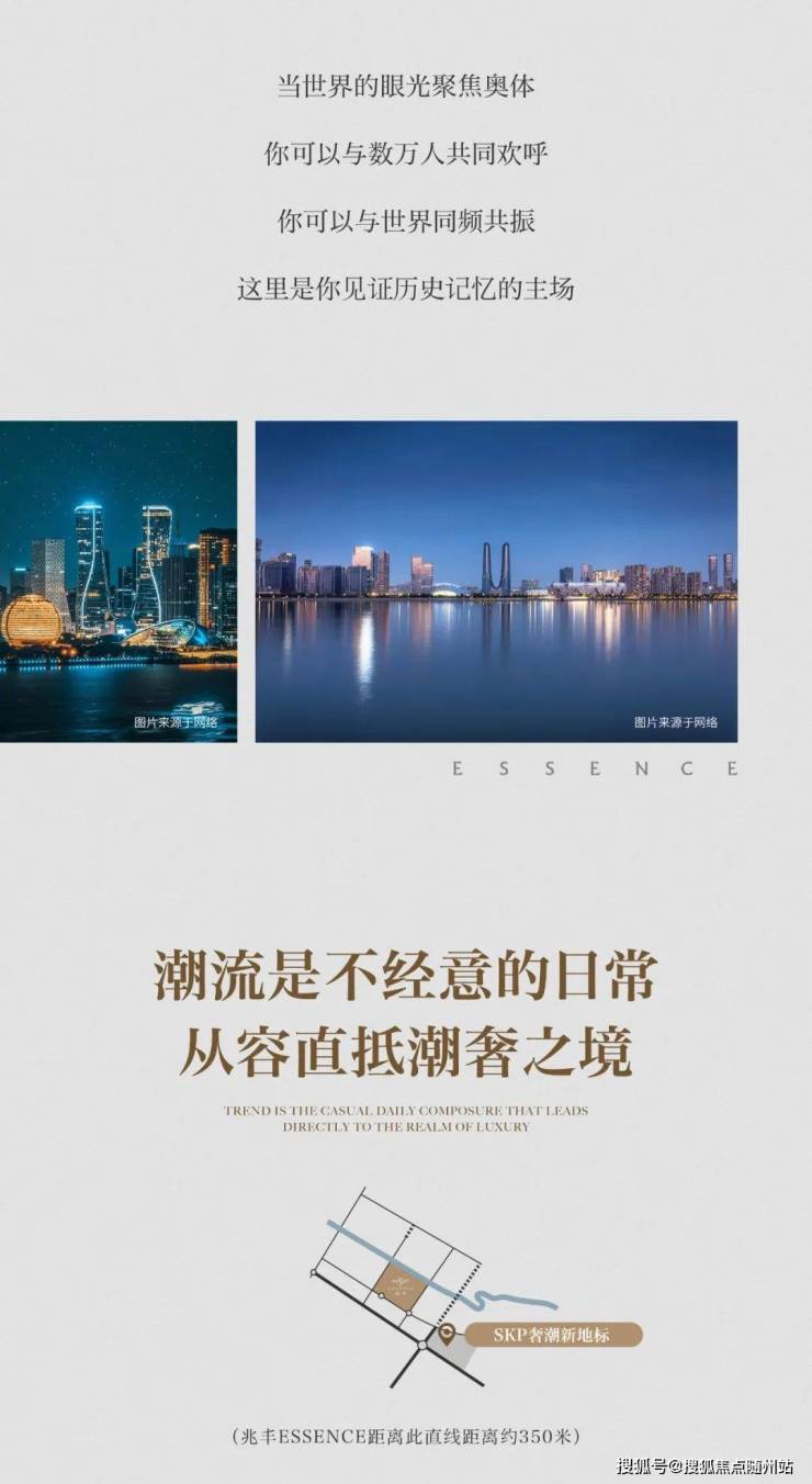 兆丰ESSENCE是杭州奥体CBD核心区的封面级商业大平层项目,由国际建筑事务所Aedas操刀设计,定位为"塔尖艺术奢域"。