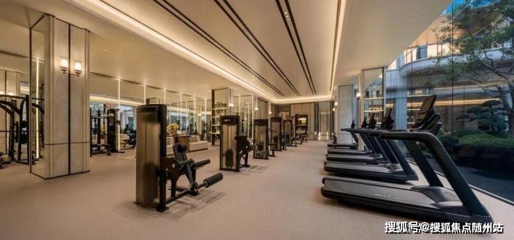 有超300方的跃澜 FIT CLUB 健身房,里面配的都是全球顶奢运动器械品牌“必确PRECOR”的器械,美国进口,单台跑步机的价格要近10万。整个场域跑步机、椭圆机、史密斯机、网红爬楼机……力量区、有氧区、器械区一应俱全,器械采购成本超百万。
