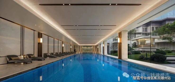 四面铝板的立面,南向是大面积的玻璃,转角处做了柔和的弧形处理,简洁高级,在区域界面中辨识度十足;园区核心的异形蓝宝石水池,搭配热带风情植被,营造出度假般的归家体验;超3000㎡的会所空间,配备了恒温泳池和斥资百万打造的健身房,让高端生活方式成为日常 。