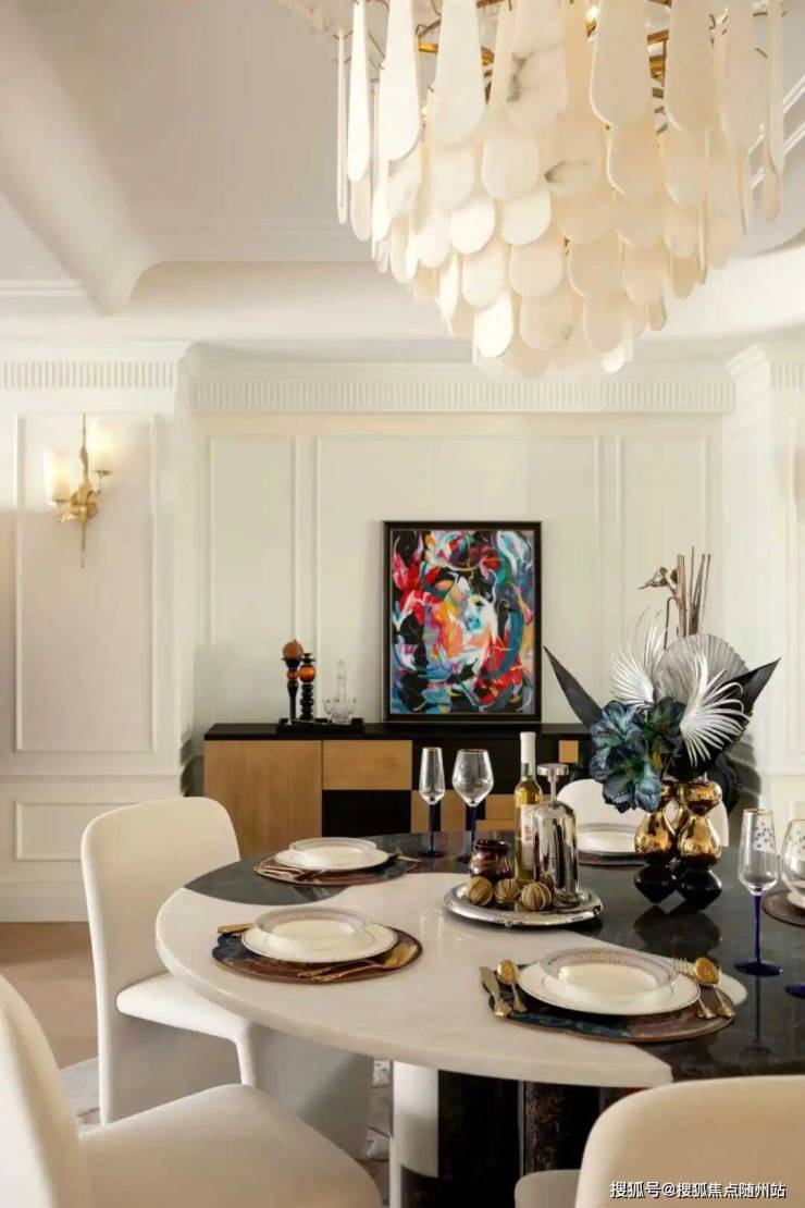 中间套的客餐厅更是达到约100㎡,一张12人的大圆桌也有充足的空间优雅转身。周末约上好友来聚会,给主人赚够了颜面。