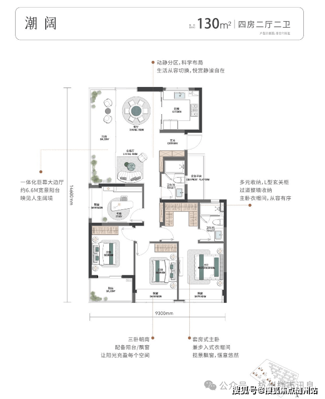 花园洋房建筑面积约139㎡,客厅、双卧皆朝南,拥享宽屏采光视野,大四房格局满足改善高阶之享。