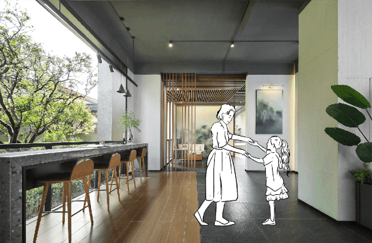 有关生活的理想,在家楼下就能实现,所有生活的热爱,融入社区场景的点滴。是灵动的叠水景墙,呼应静谧的一池镜水;