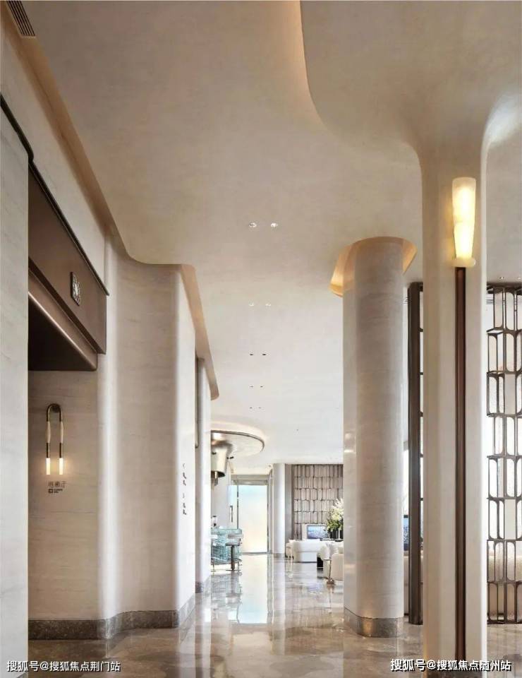 主入口大门高度达到了约7米,置身其中,尊贵气派。选用贝金米黄石材、维多利亚绿与白雪公主奢石,搭配古铜色金属板,巧妙融合冷暖色调,营造出极具张力的美学效果。