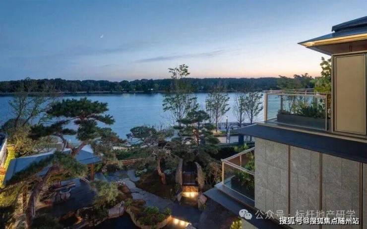 临水处,低密揽湖合院横向披檐以留白之艺勾勒从容轮廓,首层360°洄游厅堂,以大幅通透的窗地比令建筑立面剔透如艺术。一层一居的奢阔尺度,奢享湖岛巨幕生活,让家如生长于湖畔的绿岛,营造流动的“自然光剧场”。